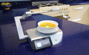 -les couverts adaptés à manches grossis et que l’on peut couder pour orienter plus facilement le couvert vers la bouche.