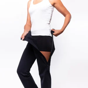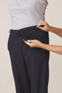 - Vêtements adaptés : certaines grandes marques proposent maintenant des collections « adaptées » avec des vêtements conçus pour faciliter l’habillage. Il y aussi des marques spécialisées. Ces vêtement ont des caractéristiques qui les rendent plus facile à enfiler (ouverture plus grande et/ou déportée), plus facile à manipuler (fermeture velcro, aimantée, système de passants…) plus confortables (pas de poche ni de couture sur les pantalons destinés à une utilisation en fauteuil), plus adaptés à une utilisation en particulier par exemple une utilisation en position assise.