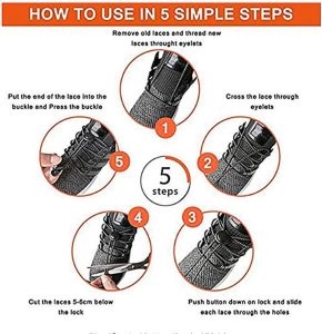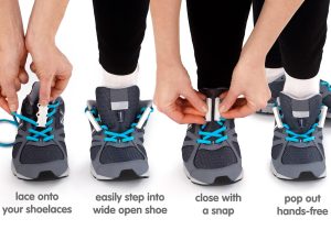 - Chausse-pied à long manche pour faciliter le chaussage et éviter de se baisser. Cette solution est souvent complémentaire d’une paire de chaussures avec un système de fermeture adapté : velcros, lacets spécifiques.