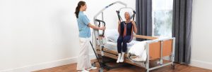 Le lève-personne (aussi appelé soulève-malade) est une aide aux transferts motorisée qui permet à un aidant de transférer une personne d’une position allongée à assise ou d’une position assise à assise, éventuellement d’une pièce à une autre, sans avoir à la porter. Selon les modèles il peut aussi permettre de relever une personne du sol.