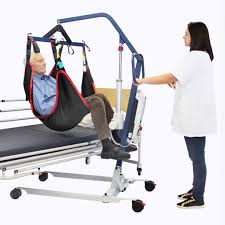Pour cela, la personne aidée est installée dans une sangle rattachée au lève personne par un fléau.