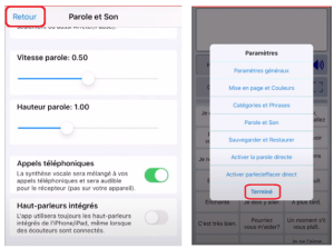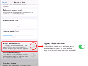 L'application Assistant Parole, version IOS, permet d'utiliser la synthèse vocale lors des appels téléphoniques. Les messages composés ou sélectionnés sur l'application sont directement vocalisés sur le téléphone de l'interlocuteur et non sur le téléphone de l'appelant.